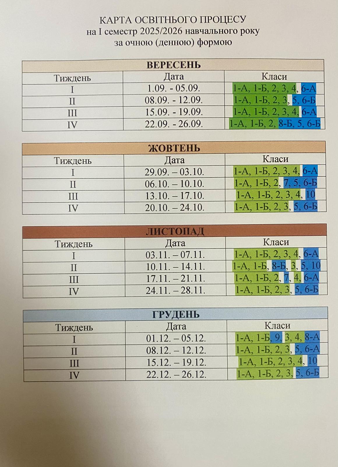 КАРТА ОСВІТНЬОГО ПРОЦЕСУ НА І СЕМЕСТР 2025/2026 НАВЧАЛЬНОГО РОКУ