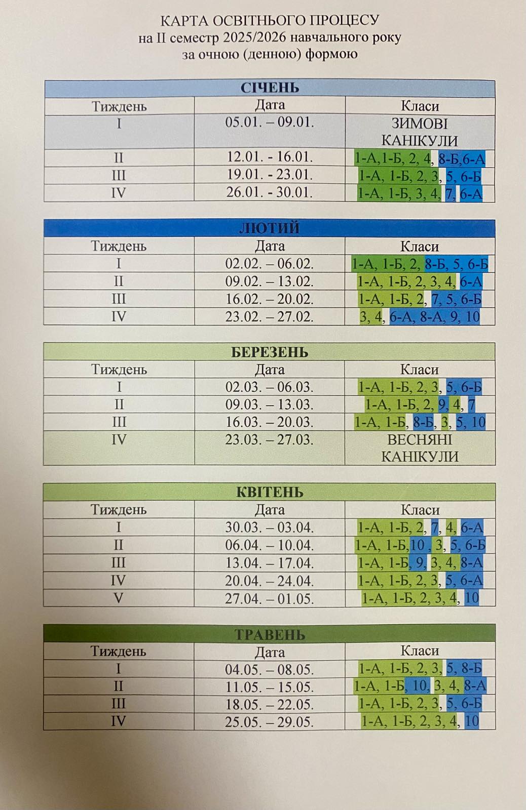 КАРТА ОСВІТНЬОГО ПРОЦЕСУ НА ІІ СЕМЕСТР 2025/2026 НАВЧАЛЬНОГО РОКУ
