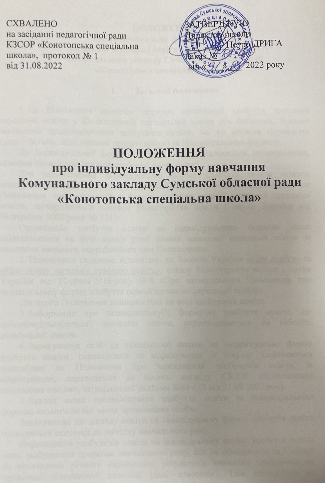 ПОЛОЖЕННЯпро індивідуальну форму навчання |