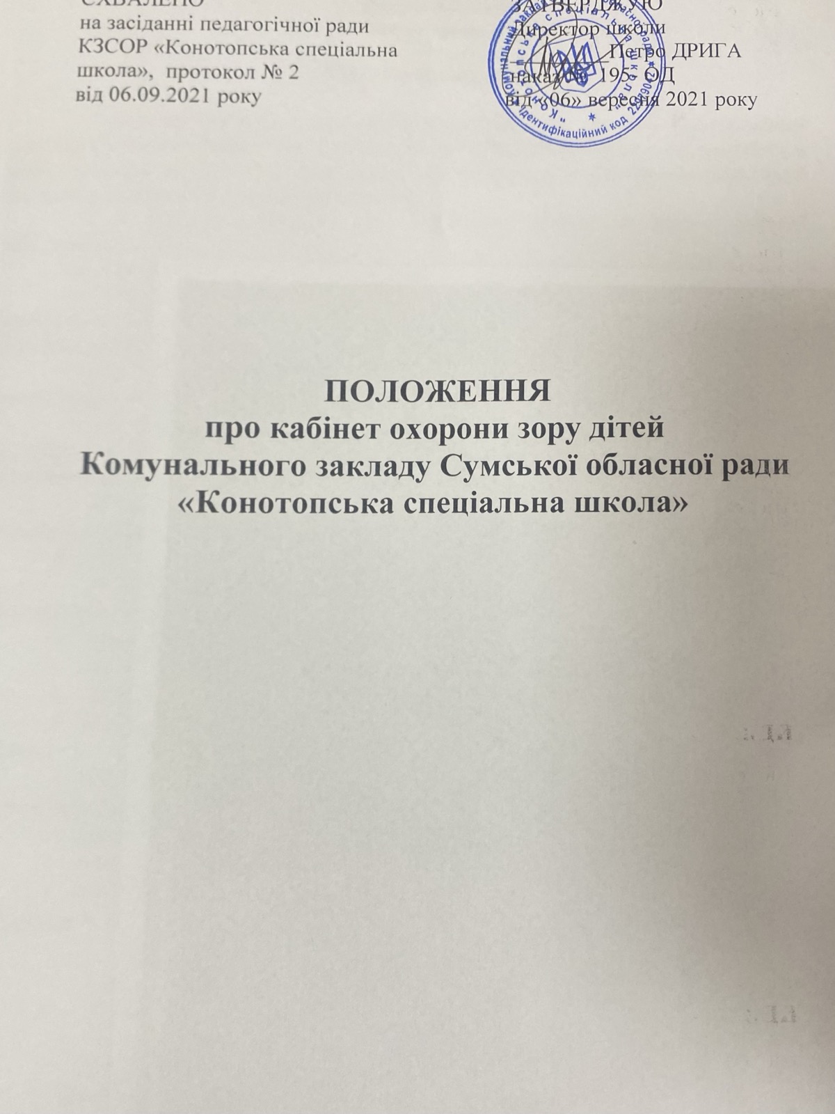 ПОЛОЖЕННЯпро кабінет охорони зору дітей |