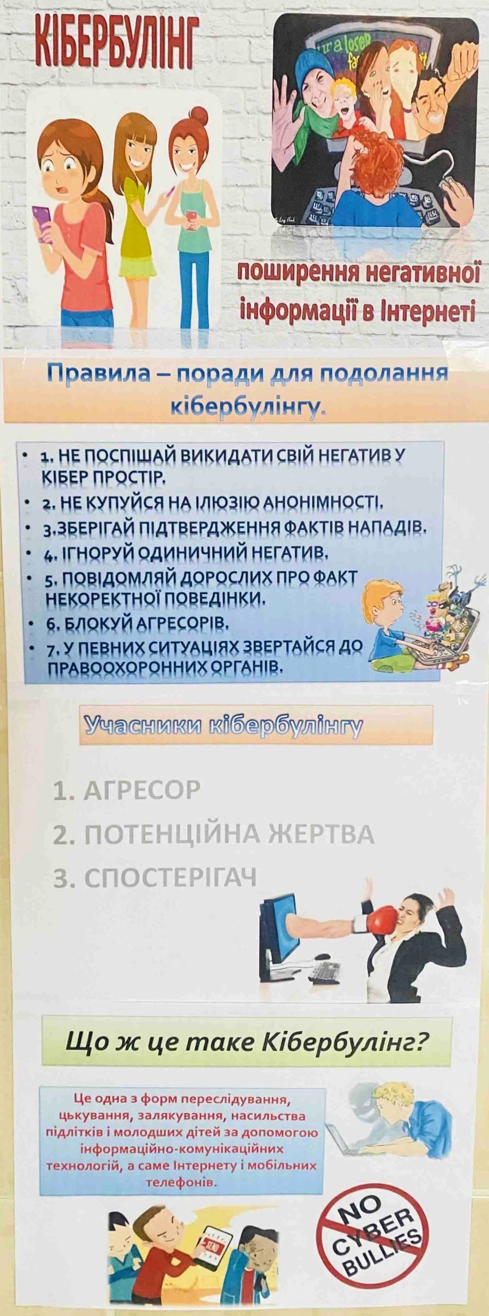 Під час бесід говорили про правила користування мережею Інтернет, захист персональних даних, важливість надійних паролів та обережність у спілкуванні з незнайомцями. Окрему увагу приділили темі кібербулінгу: обговорили його ознаки, наслідки та способи протидії. Учні активно долучалися до обговорення, ділилися власними думками та прикладами життєвих ситуацій, вчилися розпізнавати небезпеки та знаходити правильні рішення.