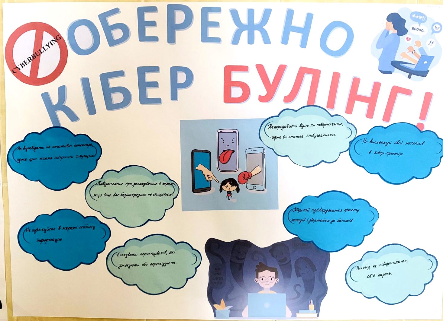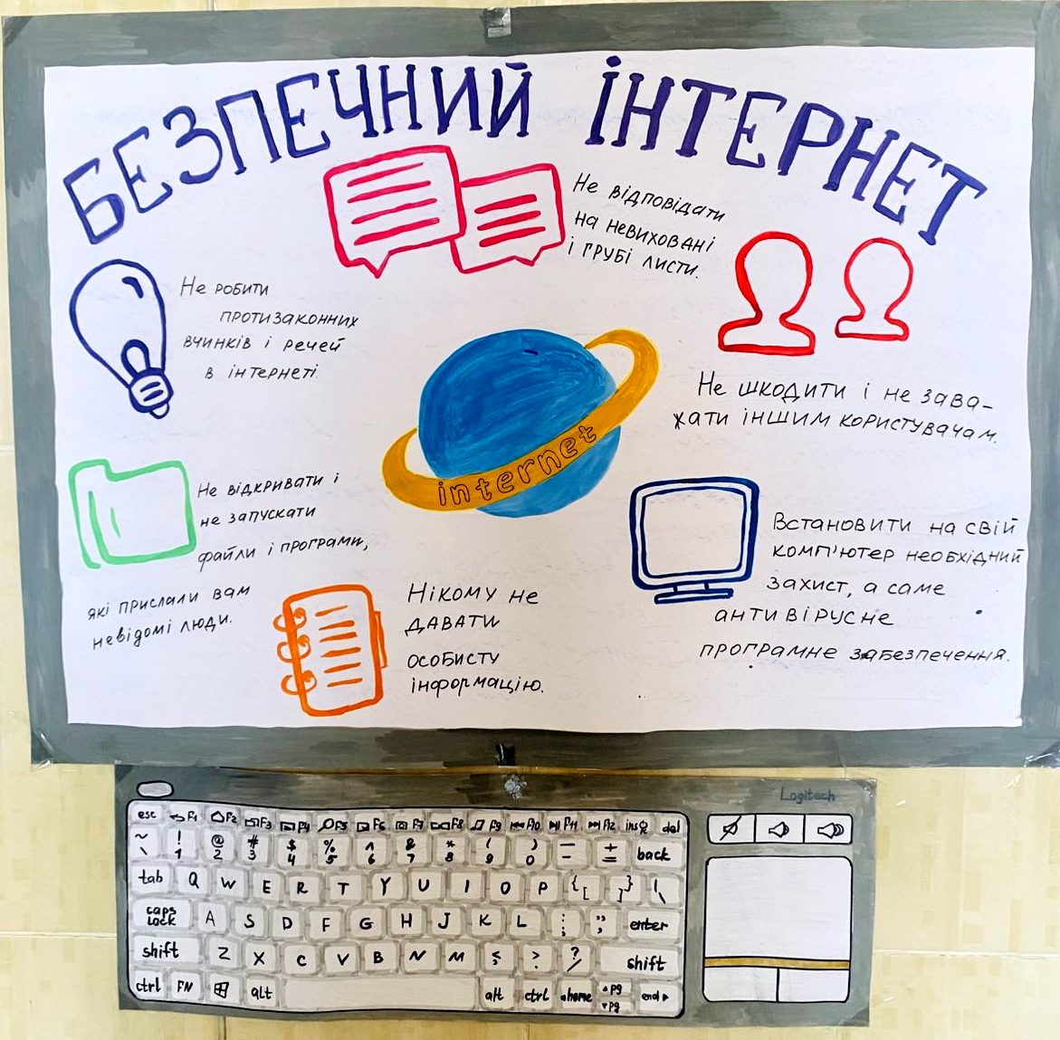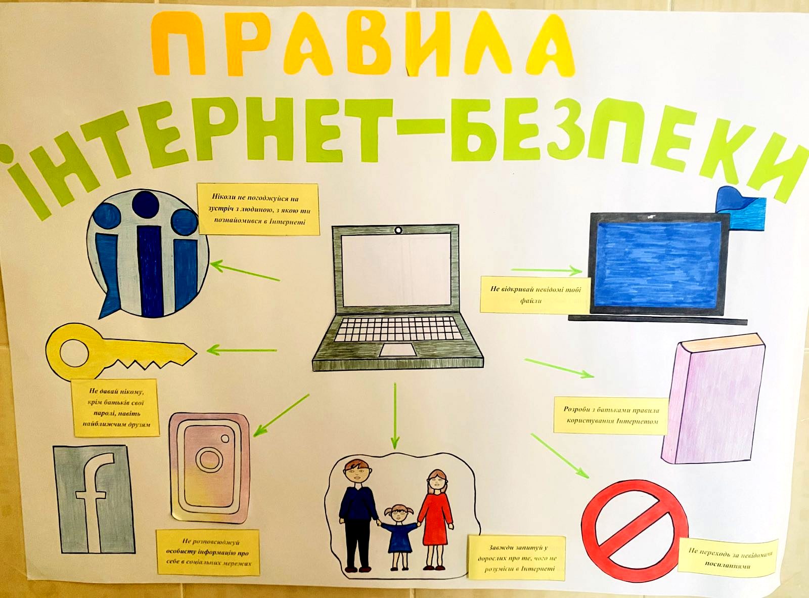 За результатами проведеної роботи діти підготували інформаційні вісники (плакати), у яких відобразили основні правила безпечного Інтернету. У своїх роботах вони наголосили на важливості поваги в онлайн-спілкуванні, відповідальності за власні слова та дії в мережі, а також на необхідності не залишатися осторонь у випадках кібербулінгу.